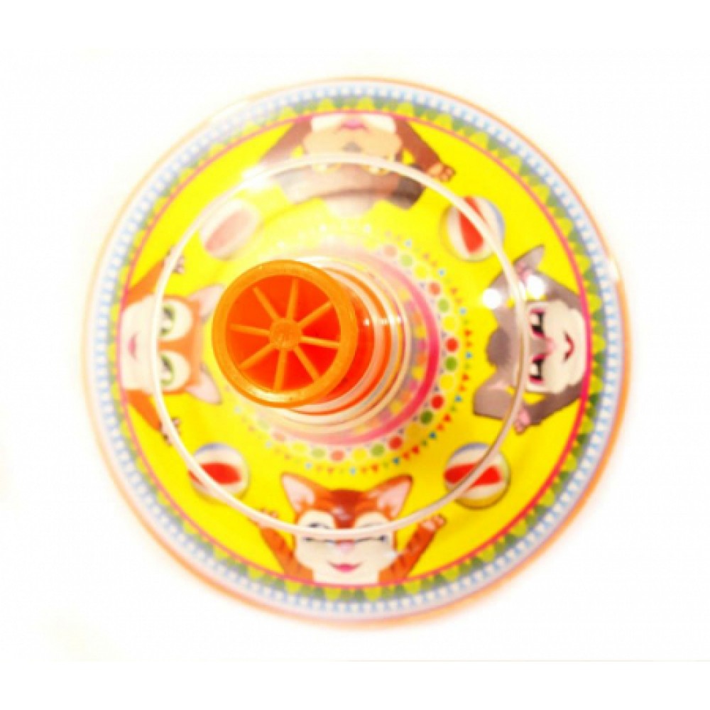 Игрушка юла - это классический волчок: круг с рисунком с героями - зверьками, который накрыт прозрачным пластиковым колпаком приводится в действие винтовым штоком. Когда все начинают кружится, создается впечатление веселого хоровода. Юла небольшого и очень популярного размера - 14 см в диаметре круга.