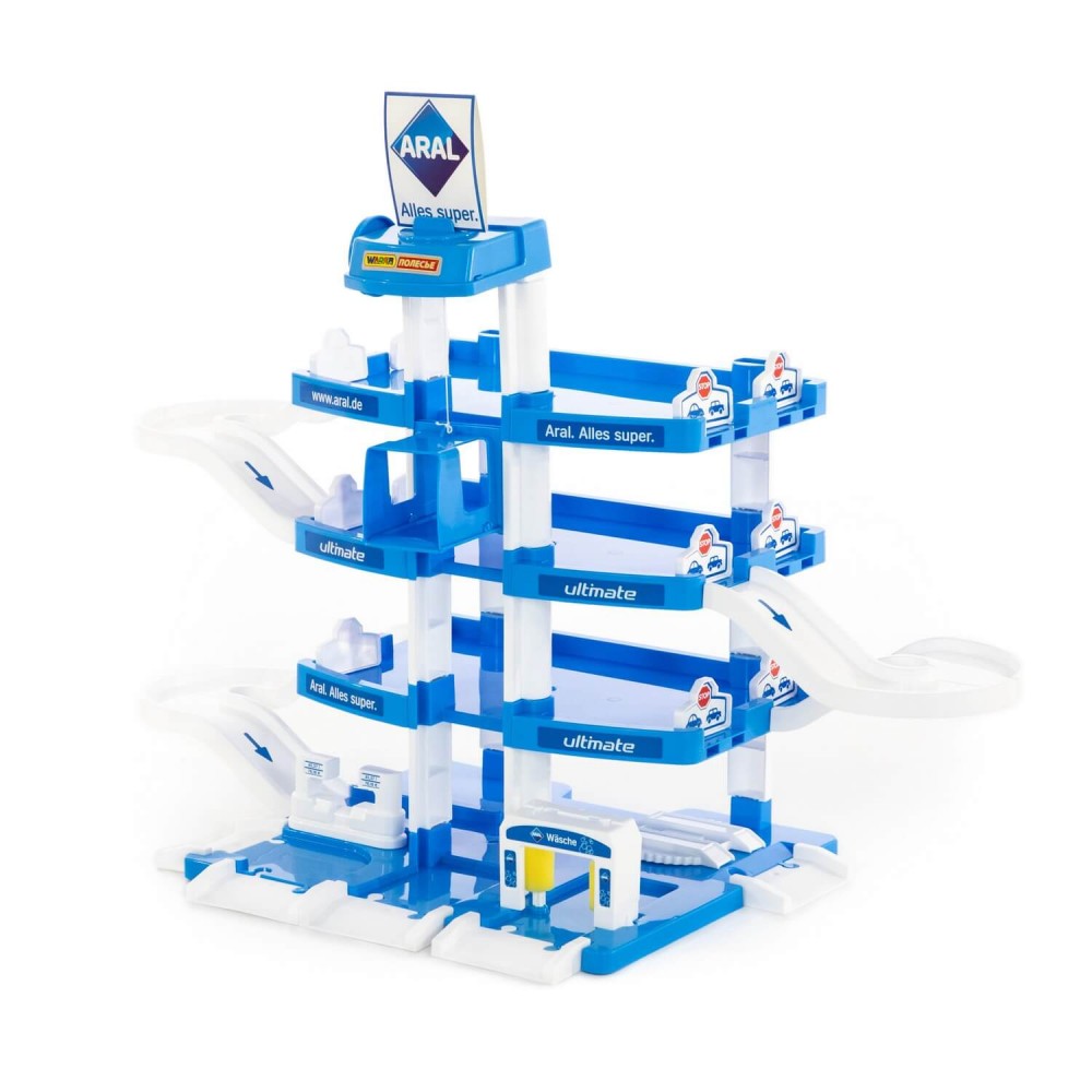 Четырехуровневый паркинг. На первом уровне паркинга расположены автомойка, автозаправка, эстакада. Для подъема на остальные уровни установлен лифт, который приводится в движение с помощью рукоятки на верхнем уровне. Автомобили в набор не входят.